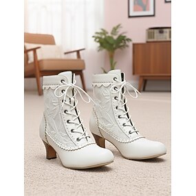 Botas femininas brancas vitorianas com cadarço, salto baixo e acabamento recortado, sapatos da moda estilo eduardiano retrô vintage dos anos 1920 para uso diário, cosplay &roupas de casamento