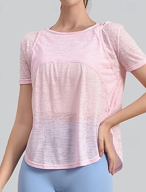 Mulheres Camisas de ioga Regatas de ioga Tops de treino Gola Redonda Respirável Fora do ombro Manga Curta Esportes Côr Sólida Blusas Para Academia Corrida Ginástica Roupas Esportivas