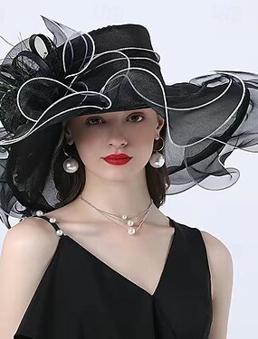 Chapéu derby de organza elegante feminino, chapéu de sol de aba larga para chá de casamento, chapéu fascinator