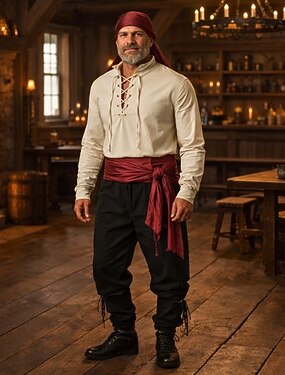 Conjunto Medieval Renascentista Calças Peça para Cabeça Cinto com acessórios Manga Comprida Pirata Cordões Côr Sólida Fantasia Homens 4 Pças. Pirata Dia Das Bruxas Carnaval feira renascentista LARP