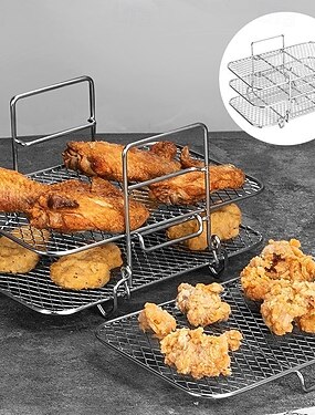 Grelha desidratadora multicamadas em aço inoxidável, acessórios para fritadeira a ar de 3 níveis, grelha removível para secagem e cozimento a vapor, ideal para assar e cozinhar em fritadeira a ar e