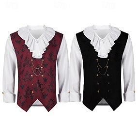 Vitoriano Medieval Renascentista Traje Cosplay Baile de Máscara Camisa Príncipe Vampiros Com Babados Fantasia Homens Fantasia Real Steampunk Dia Das Bruxas Carnaval Baile de Máscaras Festa / Eventos