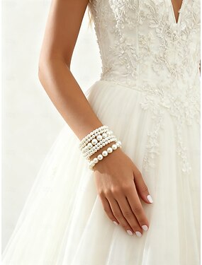 Conjunto de pulseiras femininas com pérolas artificiais, design elegante em prata e pérolas, diversos estilos para casamentos, festas, eventos formais e acessórios de noiva.