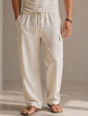 Homens Calças Cargo Calças de linho Calças Calça verão Bolso multi Perna reta Tecido Conforto Respirável Comprimento total Ao ar livre Casual Diário Moda Roupa de rua Preto Branco
