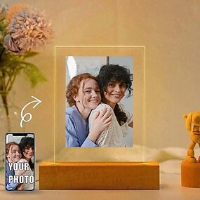 lâmpada de foto personalizada luz noturna de acrílico com foto personalizada usb branco quente adicione sua imagem o presente de feriado perfeito para melhores amigos, amantes e família