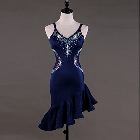 Dança salsa vestido de dança latina cristais/strass desempenho feminino sem mangas alto elastano