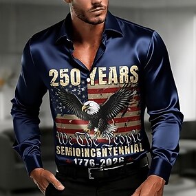 Homens 4 de julho - 250º aniversário dos EUA Águia Bandeira americana Camisa Social Blusa de cetim camisa de botão Manga Longa Patriótico Ao ar livre Festival Verão Primavera Aberto para a Lateral