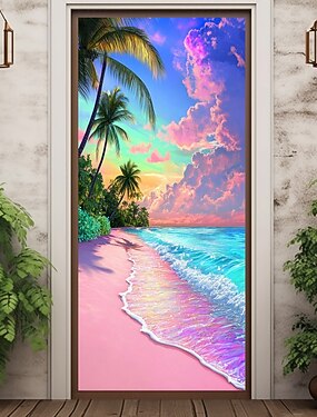 Pôsteres Tampa da porta Banners externos Praia Tropical Estilo bonito 3D De Festa Dorm Sala de Adolescentes Dormitório da faculdade Quarto de fraternidade da caverna masculina Fundos de fotografia