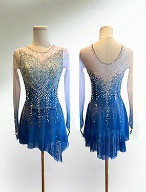 Vestidos para Patinação Artística Mulheres Patinação no Gelo Vestidos Azul Céu Patchwork Barra Assimétrica Elasticidade Alta Treino Competição Roupa para Patinação Clássico Cristal / Strass Manga