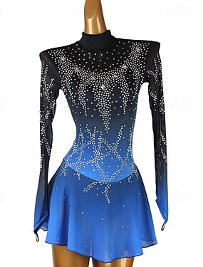 Vestidos para Patinação Artística Mulheres Para Meninas Patinação no Gelo Vestidos Azul Patchwork Com Transparência Elastano Com Stretch Treino Ensaio / Prática Profissional Roupa para Patinação