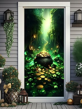 Dia de São Patrício Pôsteres Tampa da porta Banners externos Trevo Estilo bonito 3D Fantasia. De Festa Dorm Sala de Adolescentes Dormitório da faculdade Quarto de fraternidade da caverna masculina