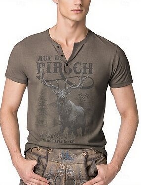 Combinação de camisetas Lederhosen Camisa Henley Bávaro Munique Alemão Alpino Herança Camiseta Arte Gráfica para Homens Adulto Impressão 3D para Carnaval Cerveja Oktoberfest Festa