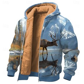 Homens Impressão 3D Veado Tosão Moletom Jaqueta Clássico Militar Caça Gola Redonda Ao ar livre Campismo Azul Castanho Claro Marron Zip Up Outono Inverno Designer S M L XL 2XL 3XL