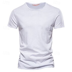 Homens T-shirt Camiseta de linho Manga Curta Decote V Verão Tecido Moda Designer Básico Macia Férias Casual / Diário Praia Azul Claro Branco Rosa claro Top Tee para Homens