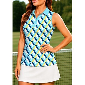 Mulheres Geométrica Vestido esportivo Vestido Polo de Tênis Sem Manga Zíper Quarter Zip Elástico Redutor de Suor Respirável Voleibal Tênis Golfe Colarinho Aberto para a Lateral Vestidos Azul Roupas