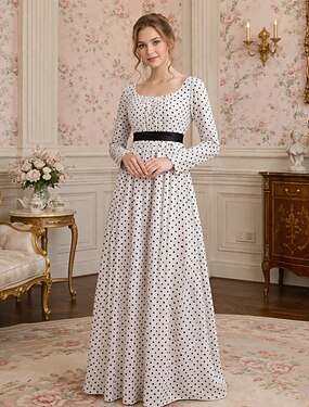 Medieval Renascentista Período da Regência Longo Vestidos Princesa Senhora Mulher nobre Poá Scoop pescoço Fantasia Mulheres feira renascentista LARP Adulto Vestido Todas as Estações