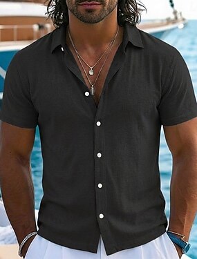 Homens Camisa de linho Camisa casual Camisa de algodão e linho camisa de botão Padrão Férias Rua Preto Branco Rosa Azul Marinho Escuro Manga Curta Lapela Verão Roupa Botão para baixo