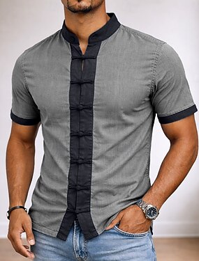 Homens Camisa Social Camisa casual Camisa desbotada Tingimento em peça Camisa 100% algodão com lavagem ácida Azul Rosa Verde Cinzento Claro Cinzento Escuro Manga Curta Tecido colarinho do vovô Casual