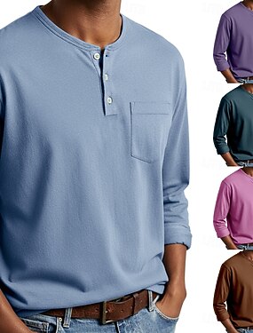 Homens Camisa de algodão Manga Longa Legal Diário Minimalismo Botões Henley Escola Treino Ao ar livre Cinza Colorido Preto Azul Camiseta Henley
