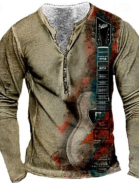 Homens Camiseta Camisa Henley Camisetas Designer Básico Clássico Camisa Gráfico Guitarra Manga Longa Camisa Amarelo Vermelho Azul Ao ar livre Diário Esportes Henley Primavera & Outono Roupa Impressão