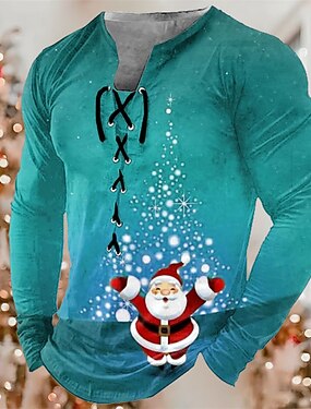 camiseta masculina de natal papai noel henley camiseta gráfica gola de papai noel verde azul roxo laranja vermelho estampa 3d manga longa ao ar livre com cadarço casual algodão
