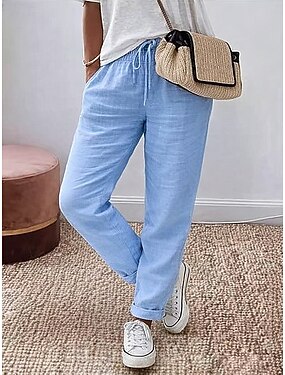 Mulheres Calças de linho de algodão chinês Calça verão Férias Básico Casual Comprimento total Cintura Alta Tecido Bolsos Cintura elástica Confortável Conforto Macio Micro-Elástica Diário Ao ar livre