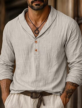 Homens Camisa de linho Camisa Popover Camisa casual camisa de praia Camisa de colarinho de banda Tecido Casual Streetwear Preto Branco Rosa Azul Céu Manga Longa Henley Primavera Verão Verão Roupa