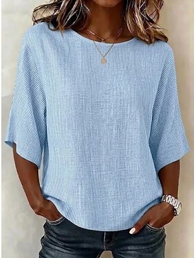 Mulheres Blusa Linho de algodão sintético Côr Sólida Elegante Casual Meia Manga Scoop pescoço Tops regulares Diário Feriado Azul Preto Branco Rosa Vermelho Verão Outono