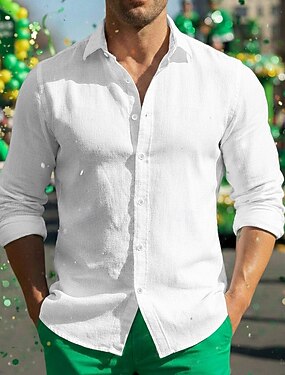 Homens Camisa Social camisa de linho Camisa de colarinho chinês Camisa gola mandarim Camisa casual Camisa de algodão Tecido Férias Havaiana Branco Azul Bege Manga Longa colarinho do vovô Primavera