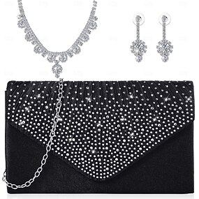 colar brincos anel roupas bolsa elegante &Liga de strass brilhante luxuosa para cosplay, joias de fantasia femininas, joias da moda