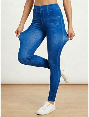Calças de moda feminina leggings até o tornozelo calças casual fim de semana elástico cor sólida controle de barriga levantamento de bunda cintura alta skinny azul 2xl