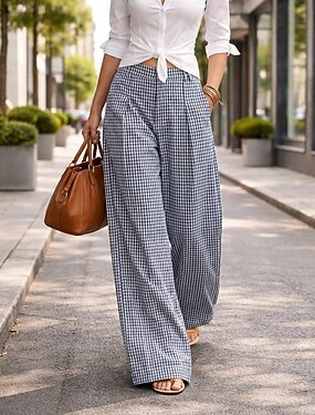Mulheres Perna larga chinês Elegante Moda Roupa de rua Comprimento total Cintura Alta Tecido Pregueado Confortável Macio Micro-Elástica Ao ar livre Formal Rua Preto Branco Verão Primavera Outono