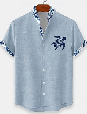 Homens Animal tartarugas Criaturas marinhas Camisa havaiana camisa de botão Camisa de gola alta Manga Curta Havaiana Casual férias na praia Verão Primavera Colarinho Mandarim Impressão 3D Camisa tipo
