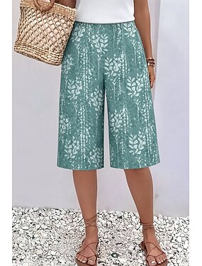 Mulheres Bermudas chinês Calção Férias Vintage Estilo Étnico Comprimento do joelho Cintura Alta Floral Gráfico Cintura elástica Conforto Sem Elasticidade Casual Diário Férias Azul Rosa Verde Verão