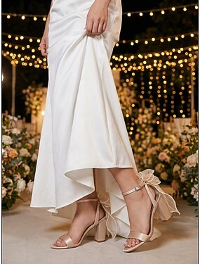 Sandálias de noiva nude com salto bloco e laço - sapatos de casamento elegantes para casamentos no jardim.
