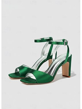 Sandálias femininas de salto alto com tira no tornozelo em cetim verde - sandálias elegantes de bico aberto com salto bloco para festas, casamentos e eventos noturnos. &eventos especiais