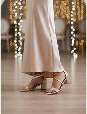 Sandálias femininas nude de salto alto com tiras, elegantes sapatos de bico aberto para convidadas de casamento, casamento no jardim. &eventos formais