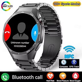 Relógio inteligente c15pro com tela amoled hd de 1,52 polegadas, rastreador NFC, chamada Bluetooth, monitoramento de saúde