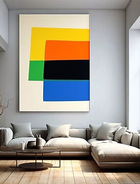 Pintura minimalista feita à mão com cores misturadas, pintura a óleo, colagem em bloco feita à mão, pintura para cozinha, arte geométrica abstrata moderna, pôster em amarelo, laranja, verde, azul e