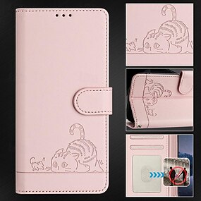telefone Capinha Para Samsung Galaxy S25 S24 S23 S23 FE S22 S21 Ultra Plus A55 5G A35 5G A25 A15 Capa traseira Com Suporte Magnética com pulseira Gato Retro TPU Couro PU