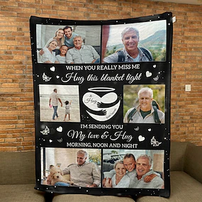 Colcha de Memória Personalizada Um Abraço do Céu Presente de Memória Colcha de Foto Personalizada para Celebrar e Lembrar Momentos Queridos - Flanela Macia e Confortável - Homenagem Sincera a Entes