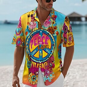Homens Amor Paz Música Camisa Social camisa de verão camisa de botão Manga Curta Hippie Ao ar livre Festival de Música férias na praia Verão Primavera Aberto para a Lateral Impressão 3D camisas de