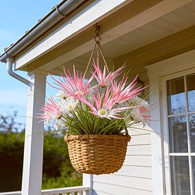 Conjunto de 6 flores artificiais roxas simuladas &Plantas verdes para exterior, perfeitas para a primavera. &Decoração para casa de verão, escritório, varanda e jardim, decoração de festas, arranjos