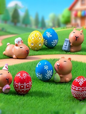 Conjunto de 9 miniaturas de capivaras com ovos de Páscoa, adoráveis estatuetas de animais em resina para cestas de Páscoa, decoração de bandeja de vários andares e mesa. &enfeites de jardim de fadas