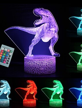 Goodream dinossauro brinquedos 16 cores 3d ilusão lâmpada de mesa com controle remoto luz noturna para crianças presentes decoração de cabeceira