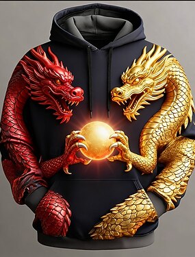 Homens Dragão Moletons Moletom Legal Festa Manga Longa Gola Redonda Bandagem Streetwear Preto Com Cordão Outono Inverno Designer S M L XL XXL XXXL