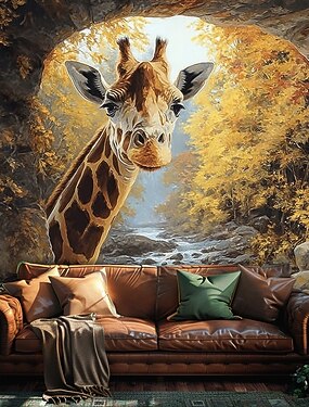 Tapeçaria 3D de girafa para pendurar na parede, arte animal, paisagem natural, vista de caverna e arco, pôster grande em tecido para decoração de quarto infantil e sala de estar.