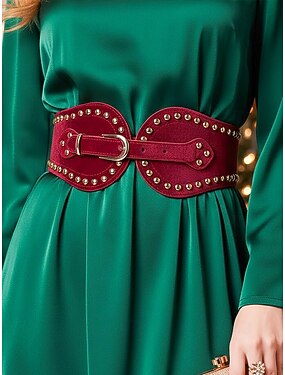 Cinto feminino de couro sintético com tachas, ideal para o Natal, perfeito para o dia a dia e festas de fim de ano. Um acessório estiloso em diversas cores.