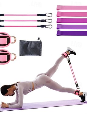 Conjunto de 11 peças para glúteos com suporte, elevação de quadril, resistência para tornozelo, aparelho elástico, corda de tensão para quadril e pernas, modelador e emagrecedor.