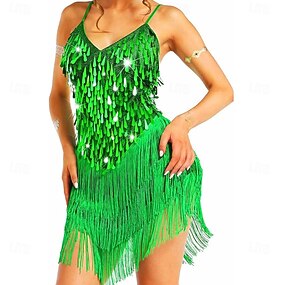 Vestido de Dança Salsa Latina da Samba Dancewear com Lantejoulas e Franja Fantasia de Performance
